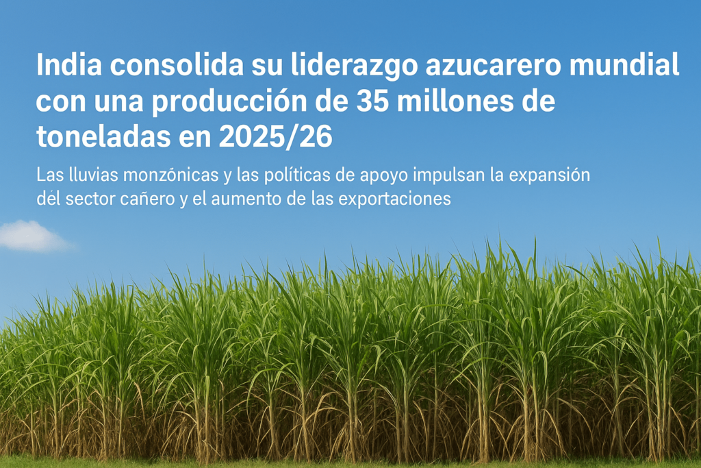 India consolida su liderazgo azucarero mundial con una producción de 35 millones de toneladas en 2025/26